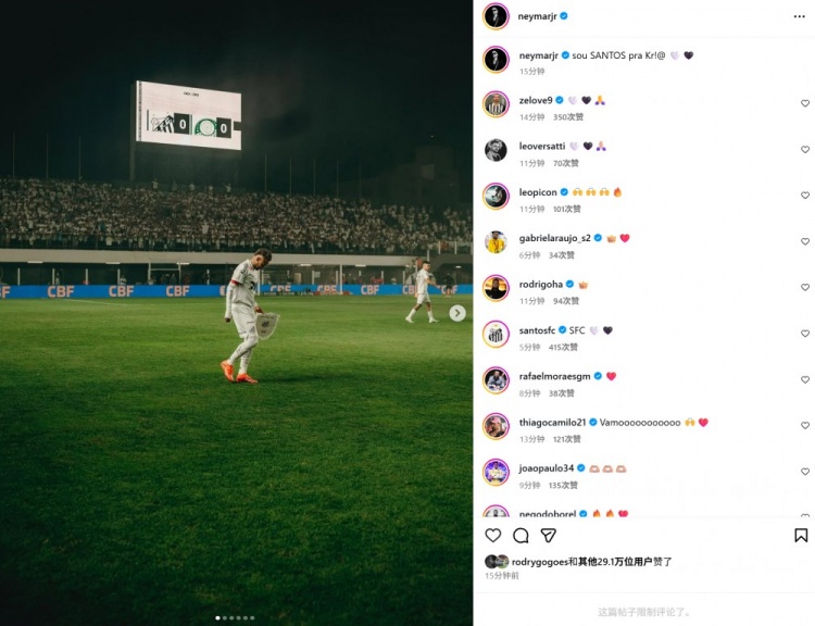 2025-11-17 00:01:23打满全场助球队绝杀取胜,内马尔社媒晒照:我是永远的桑托斯球迷