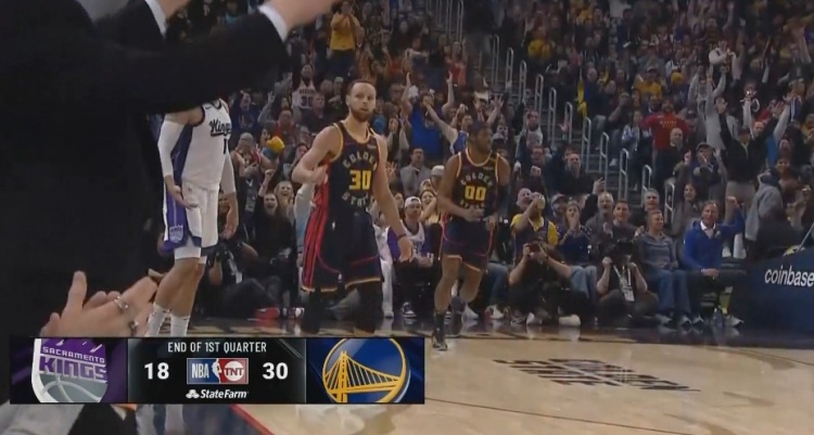 箭如雨下!勇士首节7记三分球30-18领先国王12分