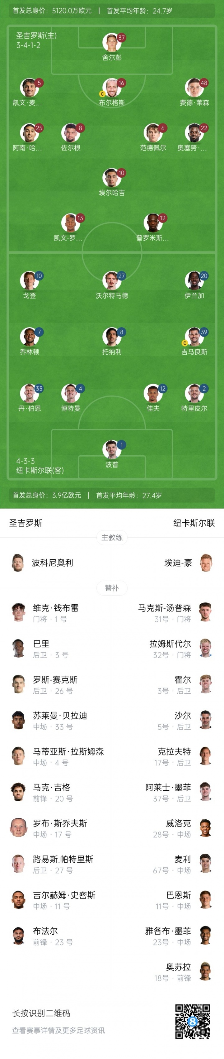 2025-10-02 00:01:53圣吉罗斯vs纽卡首发:沃尔特马德、吉马良斯、戈登出战
