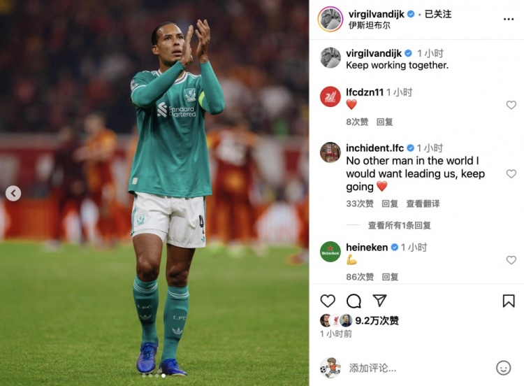 2025-10-02 00:03:33队长担当!范迪克社媒鼓励球队:让我们继续共同努力!